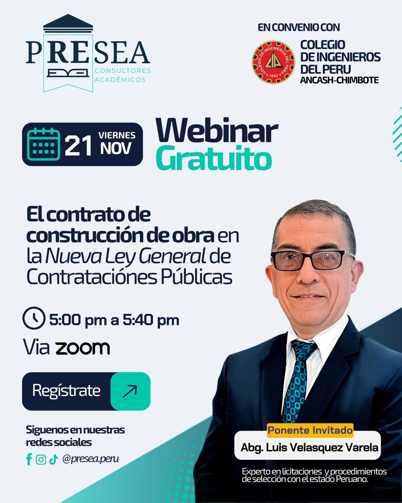 WEBINAR: EL CONTRATO DE CONSTRUCCIÒN DE OBRA EN LA NUEVA LEY GENERAL DE CONTRATACIONES PÙBLICAS