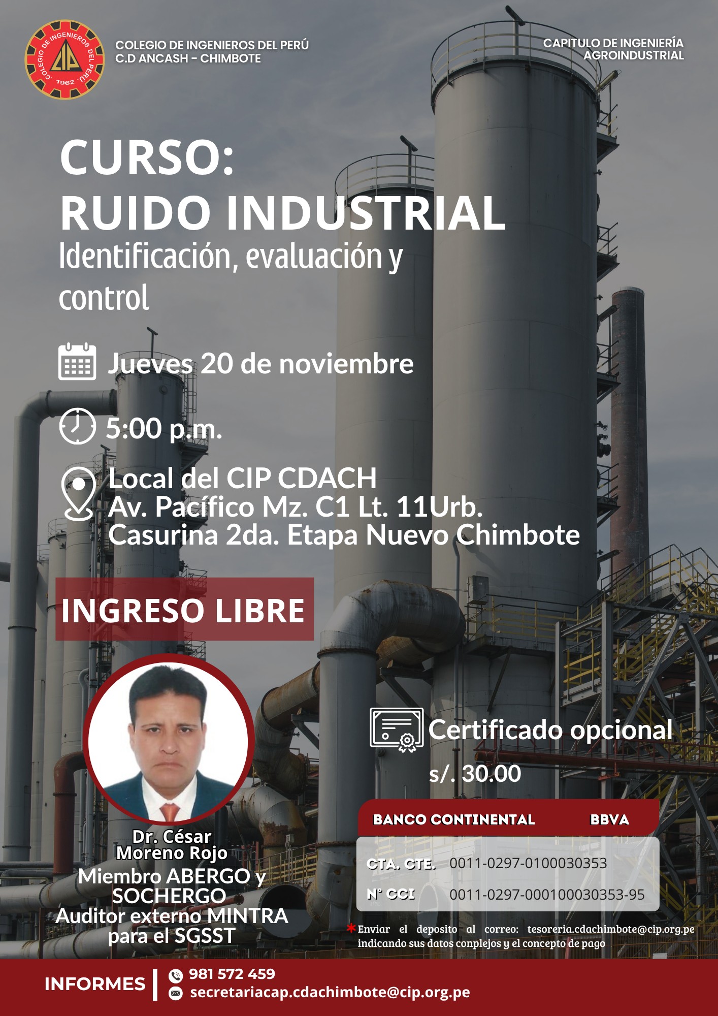 CURSO: RUIDO INDUSTRUSTIAL, IDENTIFICACIÒN EVALUACIÒN Y CONTROL